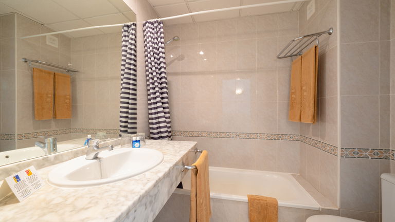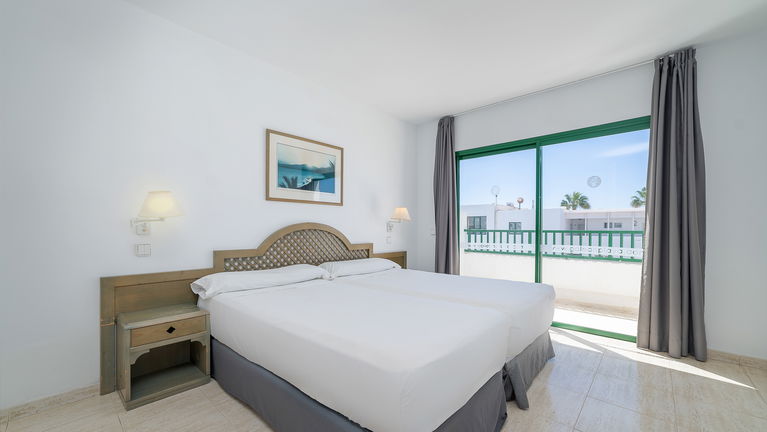 Amplios y cómodos apartamentos familiares de 2 dormitorios, con unas magníficas vistas de los jardines o de la zona de piscina y todos ellos con cocina completamente equipada y baño con ducha o bañera. Cada dormitorio tiene dos camas individuales. Estos apartamentos no disponen de ascensor.