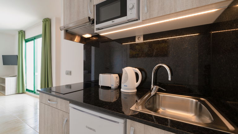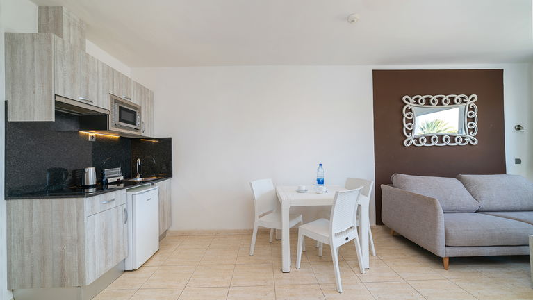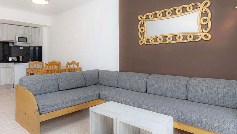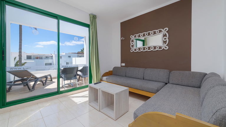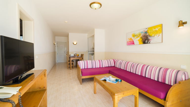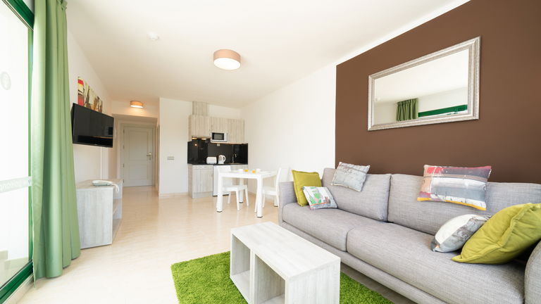 Amplios y cómodos apartamentos de 1 dormitorio, con unas magníficas vistas de los jardines o de la zona de piscina, todos ellos con cocina completamente equipada y baño. Dispone además de terraza donde poder broncearse con privacidad. Estos apartamentos disponen de ascensor.